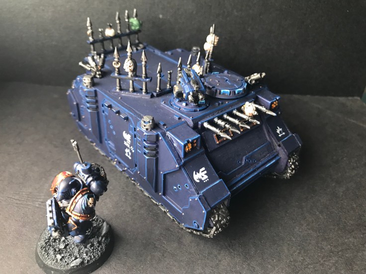 I’ve developed the insignia I trialled on the Rapier Mortar to provide some monotone chapter markings to the bullet riddled hull.