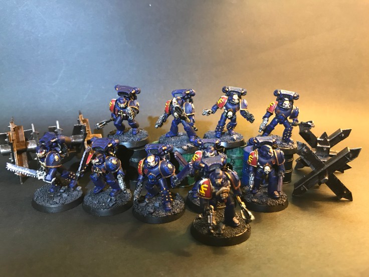 Having been slaughtered at the hands of some jumpy Ultramarines in Games Workshop Norwich in the late 1990s it was clear that I needed some, so I’ve gradually being amassing units. One was actually painted previously, but needs an overhaul and thus those below are the first unit. Yes, another ten man squad.