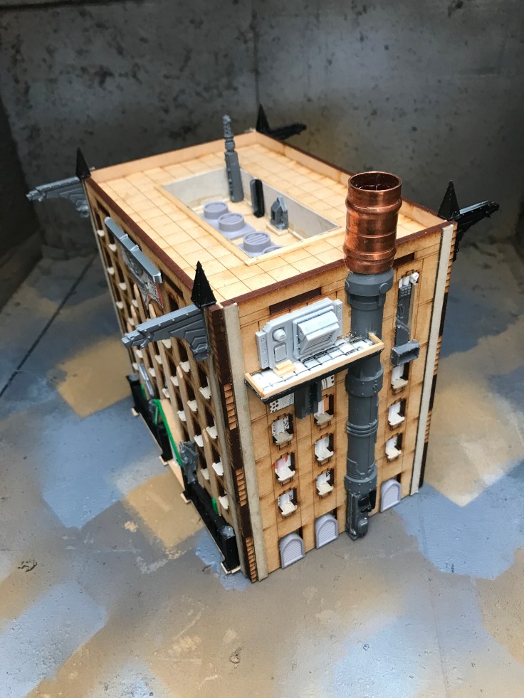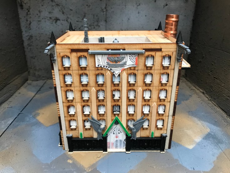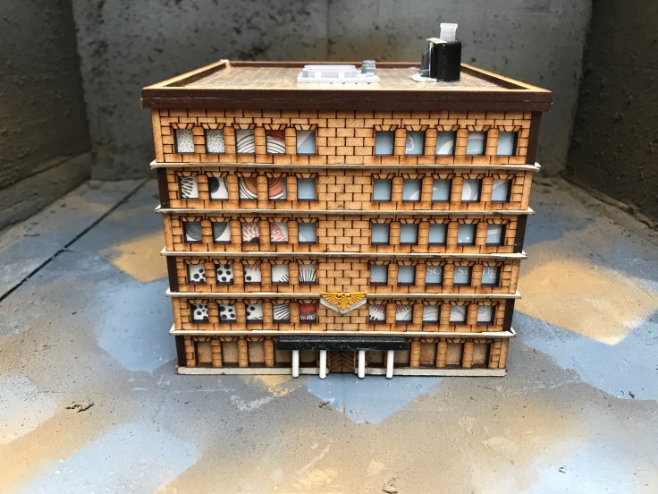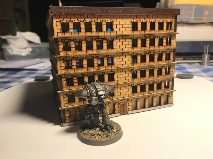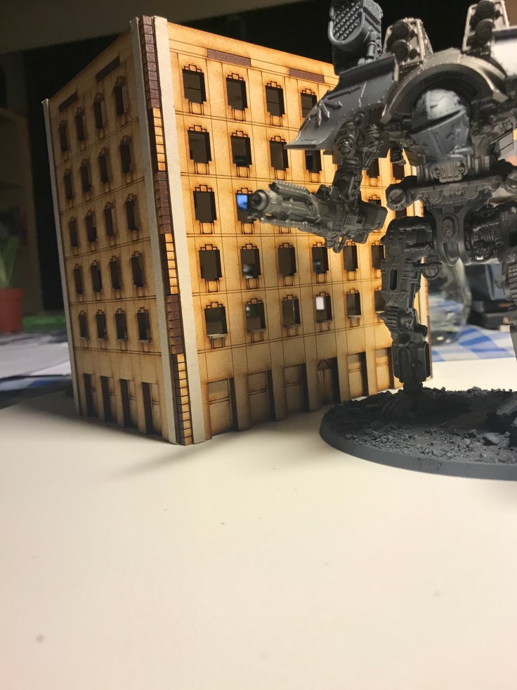 I tried the Adnet Apartments and Meller Heights buildings. Built up both are big, centrepiece type buildings. The scale for both isn’t really right for Adeptus Titanicus in my view, the windows are too big, most notably on the Meller building, you can kind of imagine the Adnet as the right scale. Neither is particularly dark or gothic either.