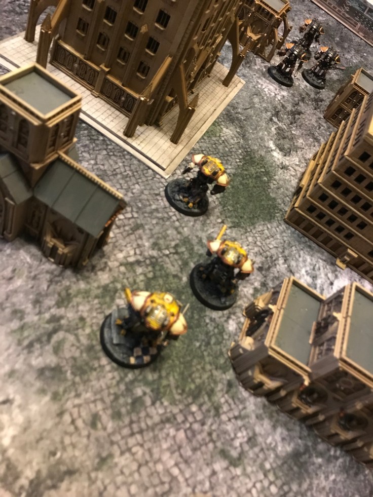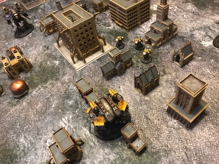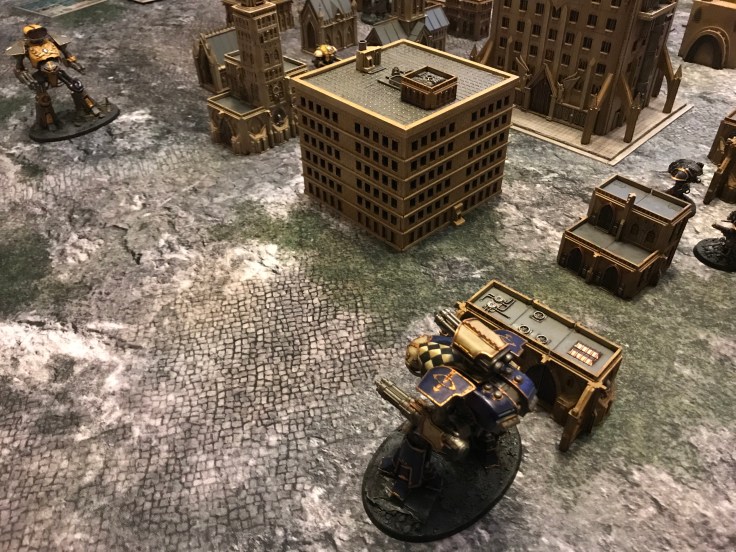 Despite the tall buildings there was no hiding the towering mass of the Warlords and they too exchanged Salvos, both losing void shields but surviving complete collapse.
