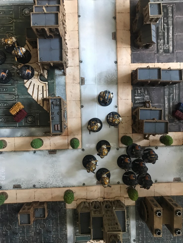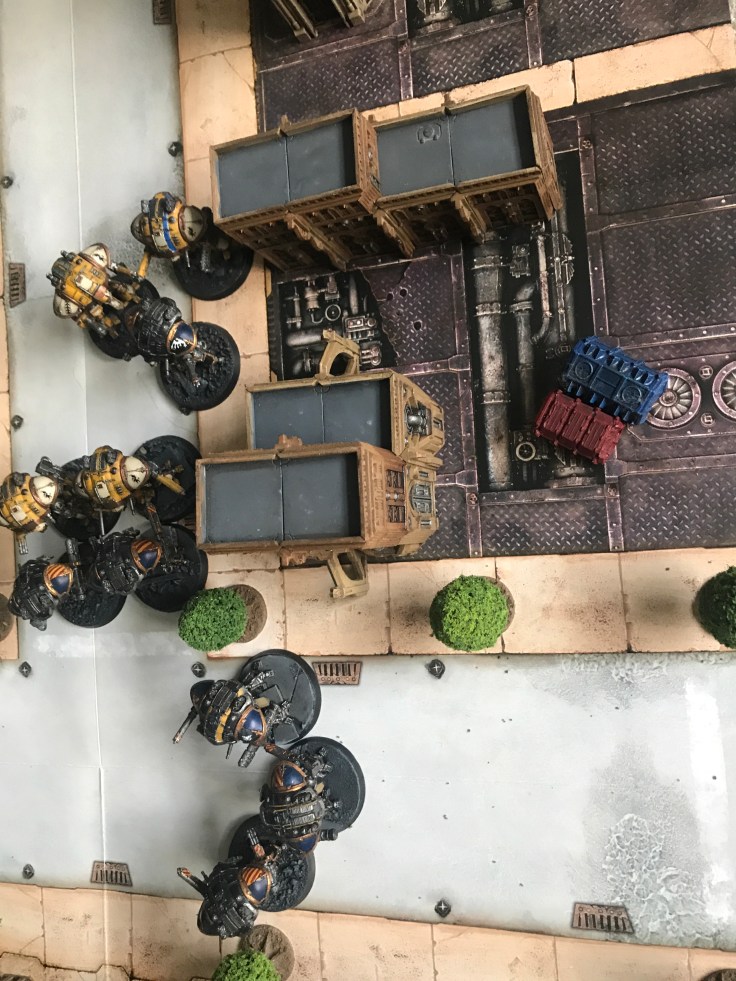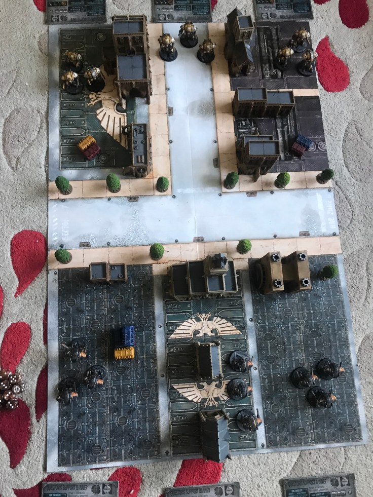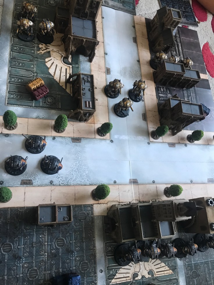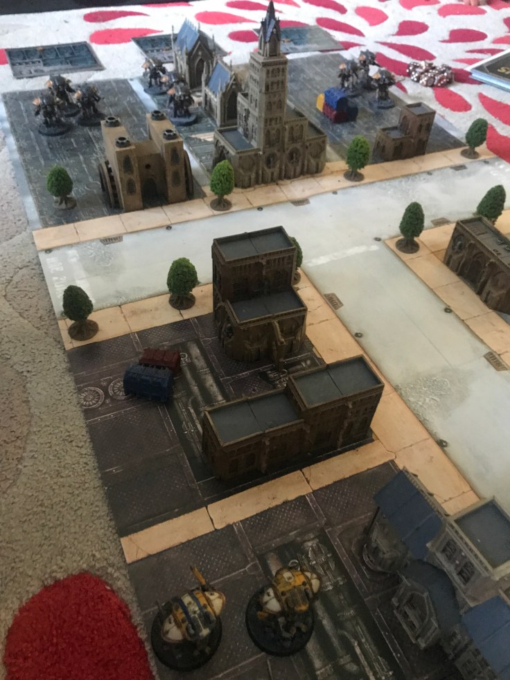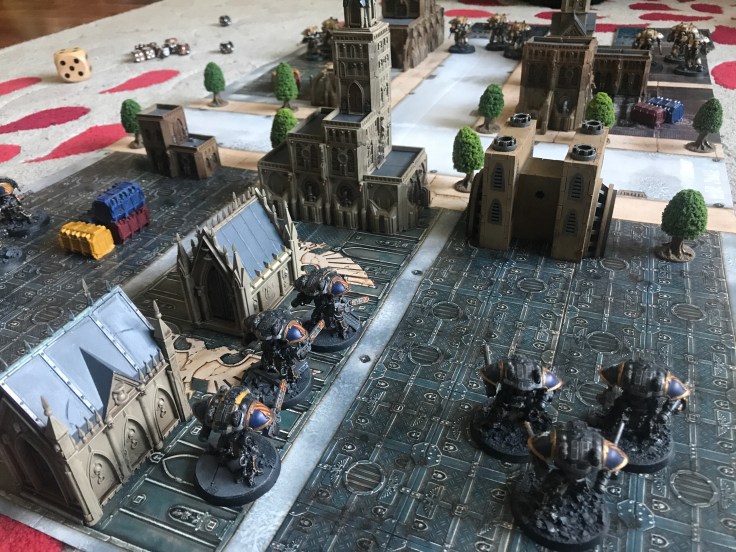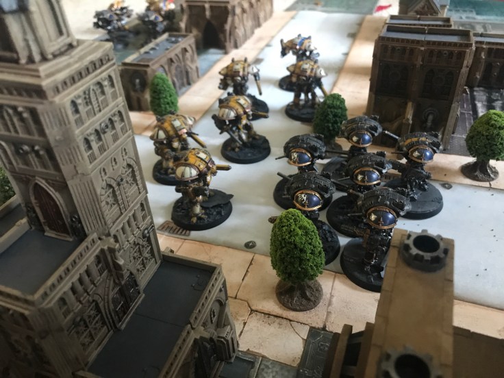 There was plenty of line of sight blocking terrain between the centre of the board and the deployment zone but Knight weaponry isn’t long range so the only option was to advance.
