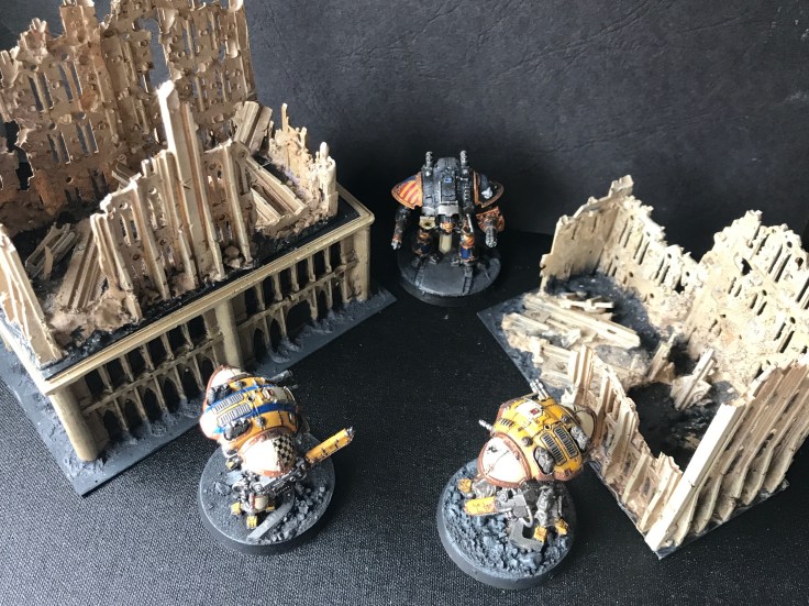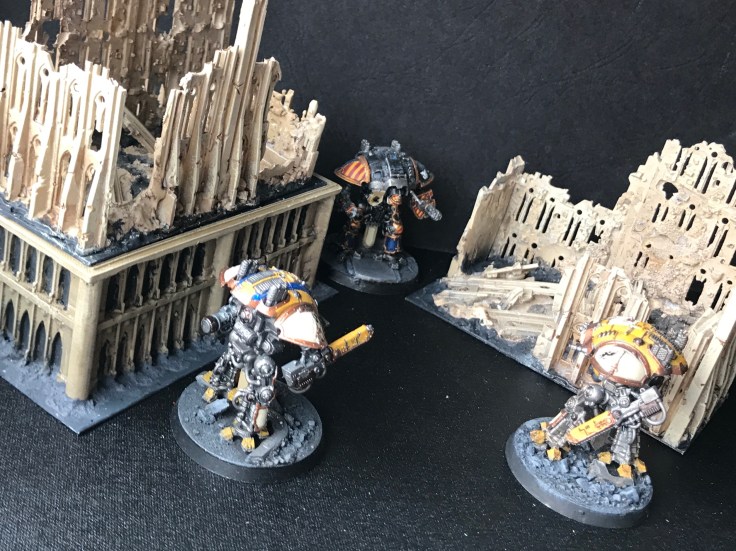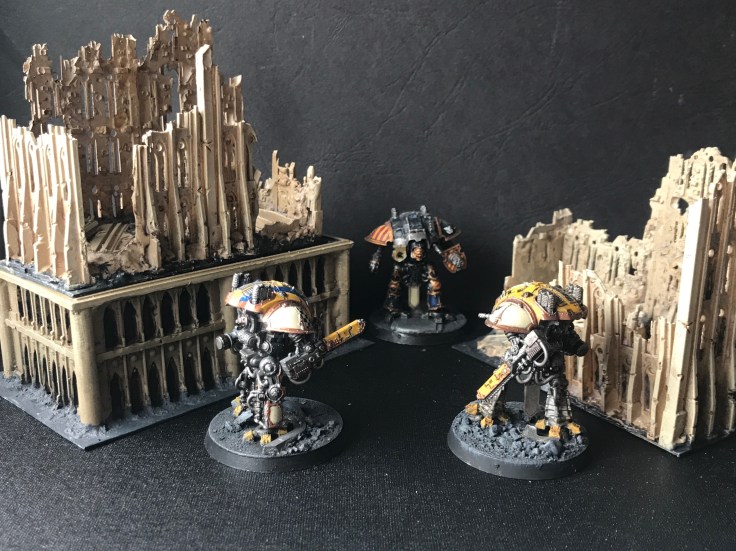 I bought some more of the Epic Armageddon ruins and with silicon moulds and epoxy resin cast some up to create more modular ruins from Adeptus Titanicus building on the earlier ones.
