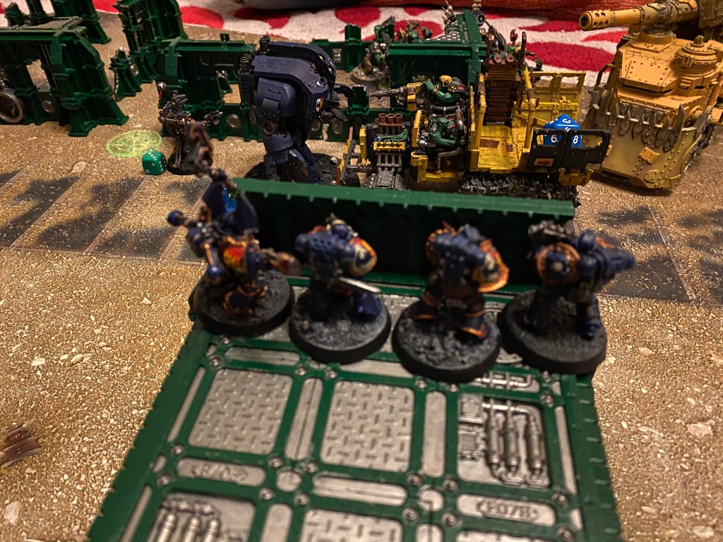 Trukk rammed Leviathan surviving heavy flamer overwatch on the charge. Didn’t survive the counter attack. Da boyz won’t be doing that again.