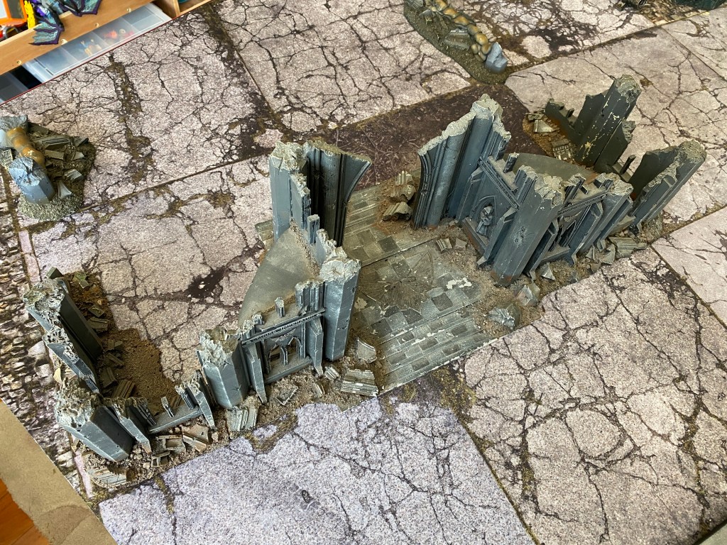 I’d not seen those Forgeworld pieces before. Certainly ‘cleaner’ than the overly gothic plastic stuff of Sector Imperialis. Looks like a great table.