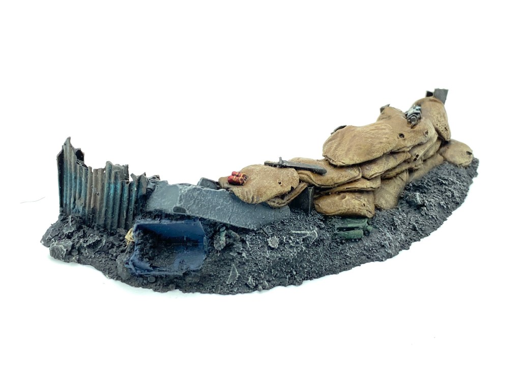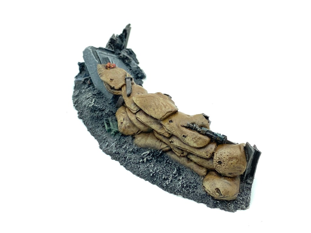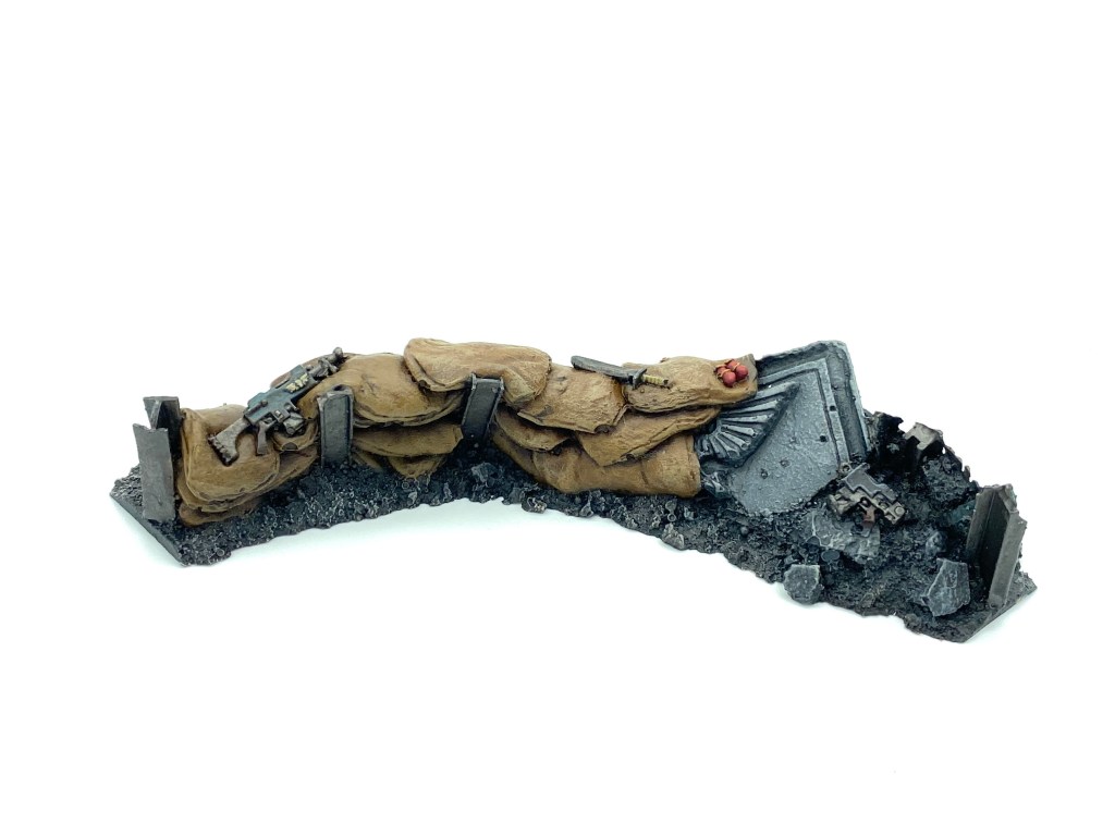 This is one of the three pieces that make up the Warhammer 40,000 Barricades Set 2. A complete set is made up of three piece resin barricades with each section approximately 6″ / 150mm long. Based on the photos I have seen I have the two curved sections (of which this is one), but not the straight middle bit.