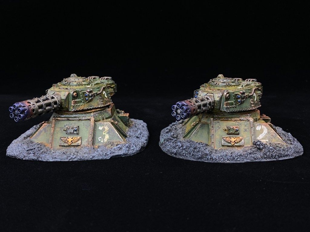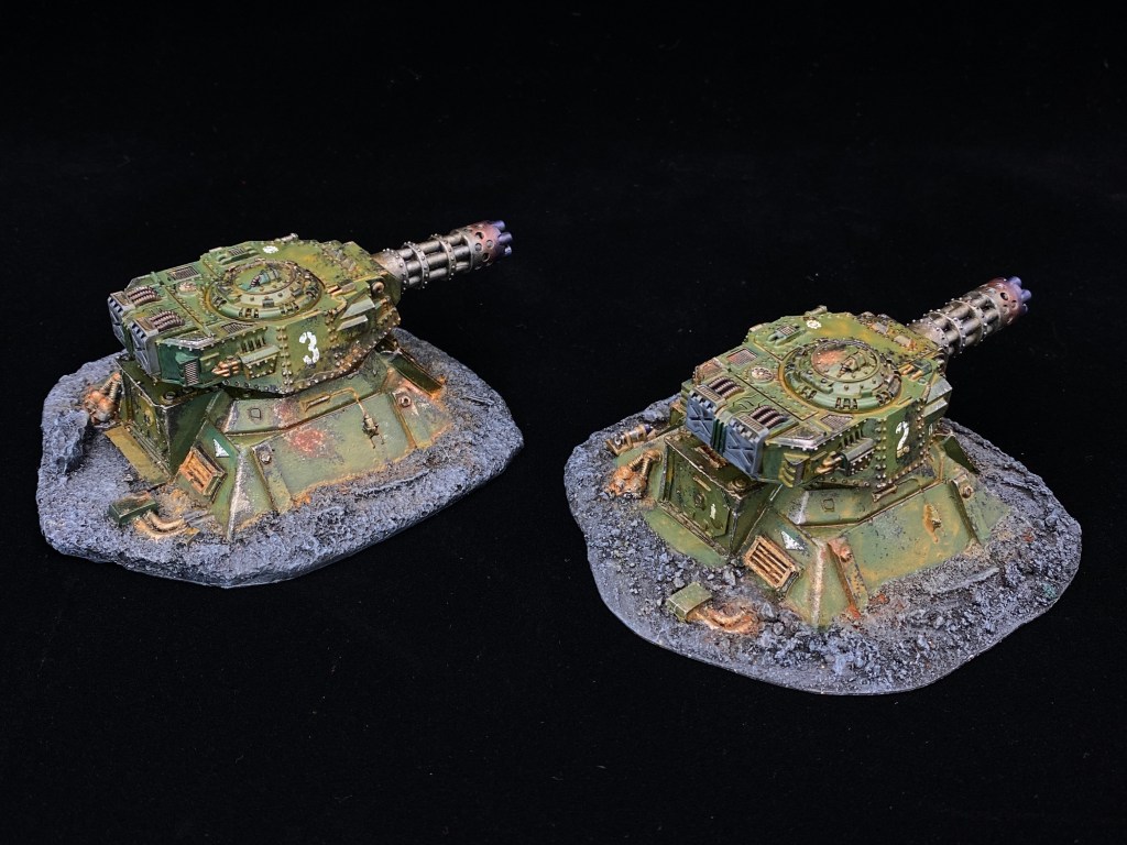 I haven’t been able to find these in a Forgeworld catalogue, but they are variously referenced as Imperial Heavy Bolter Turret Emplacements. I managed to get one base, but it came with no turret. I cast a second one and then rebased it as these have a very thick base.
