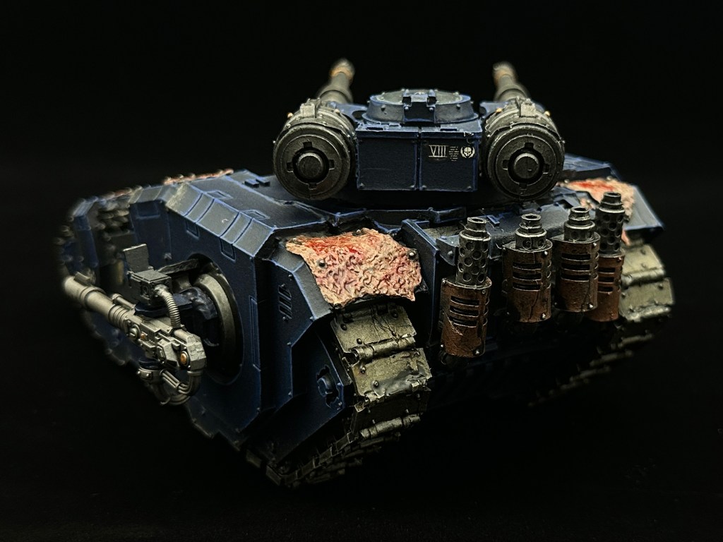 It has been badly put together and had damaged sponsons missing the Lascannons.