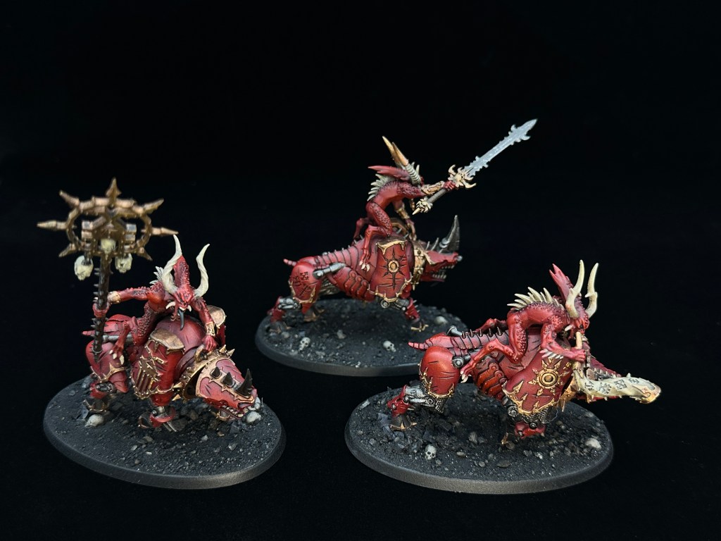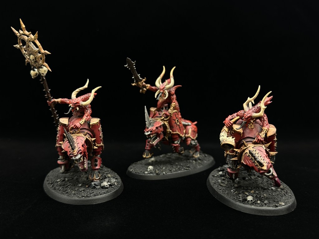 The Blood Crushers I tabled didn’t include a banner of hate or instrument of chaos, so I have added those into the army as seen here with an additional member. That’s six in total now. Let’s see how they fare next time around.