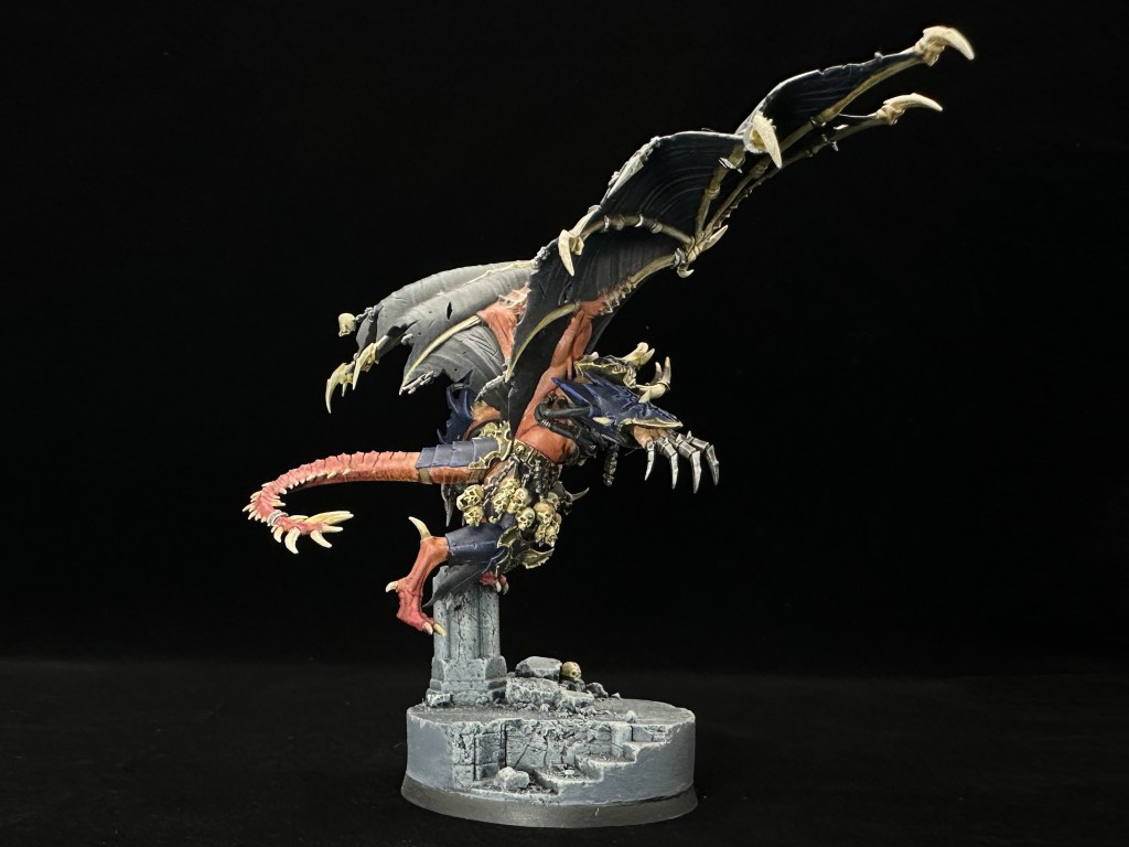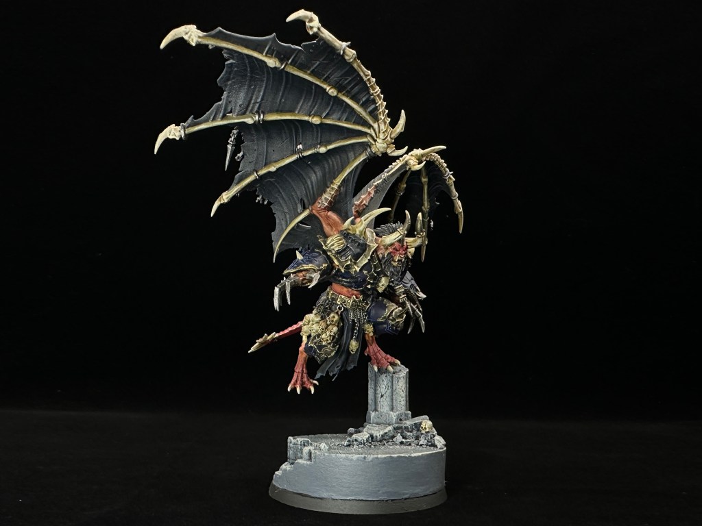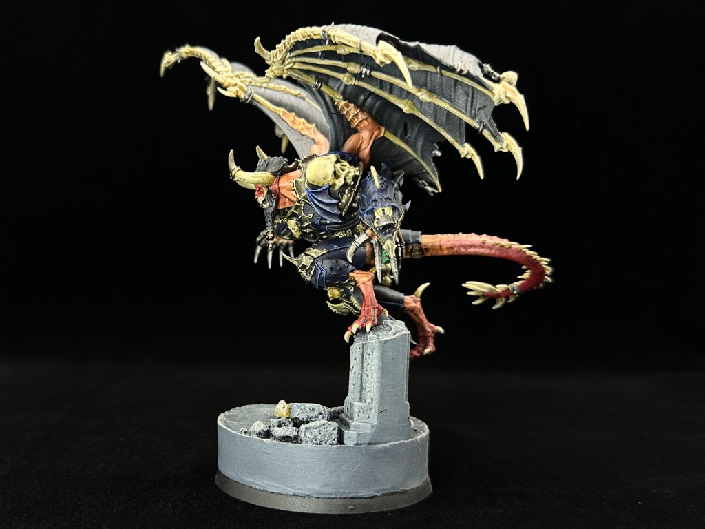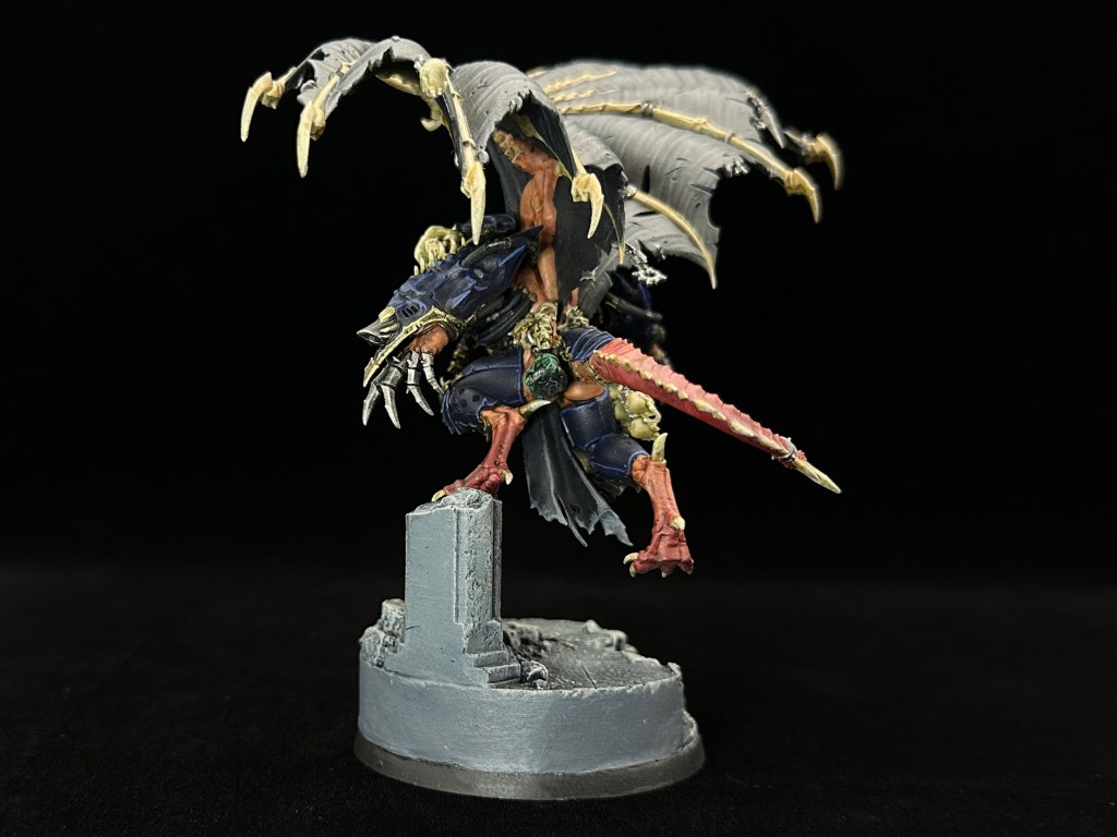 With a tip of the hat to Night Lords lore, malefic talons and wings were a must. Customised Night Lords shoulder guard on the left arm to bring it together.