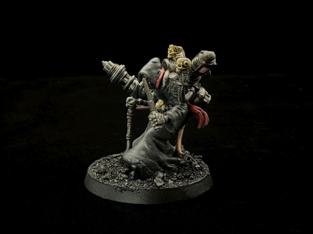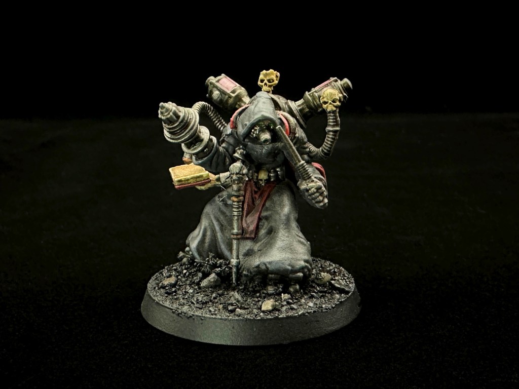 Dark Mechanicum Lexmechanic tech priest or Calculus Logi. These characters compile data so that it can be entered into a central cogitator repository.