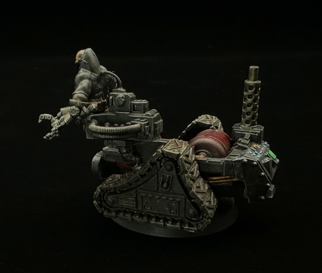 Servitor body is from the Biomechanoid squad by EightLegsMiniatures via Etsy. Most other elements scratch built from plasticard and bits from the bits box.