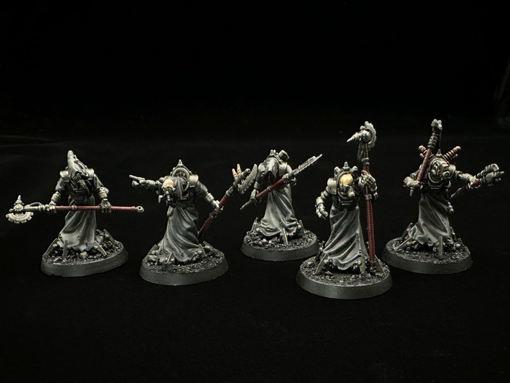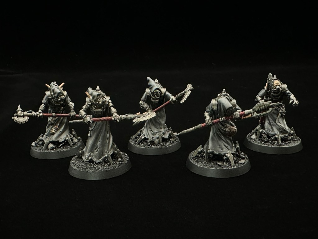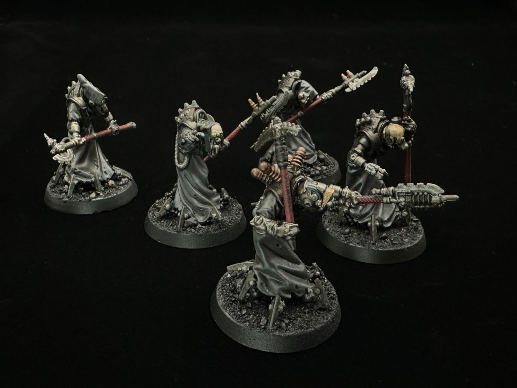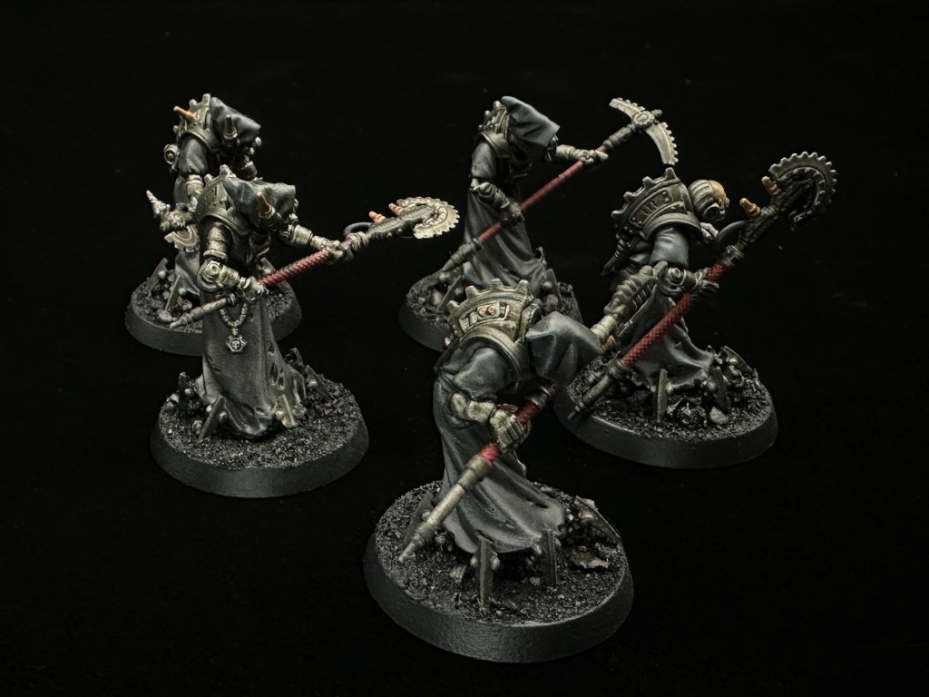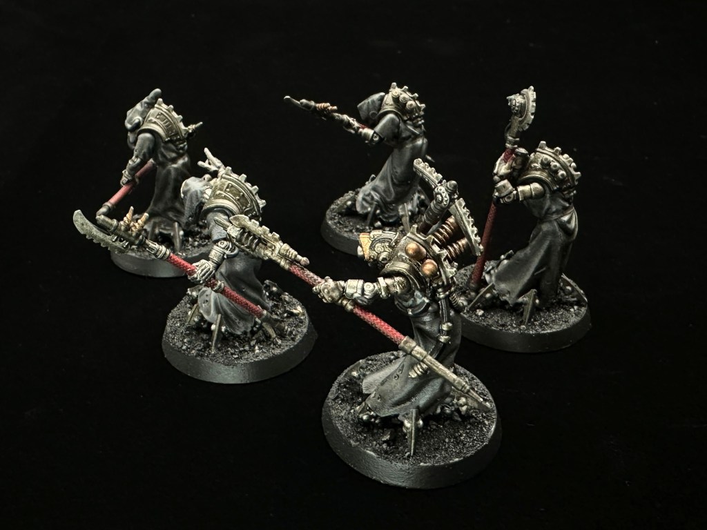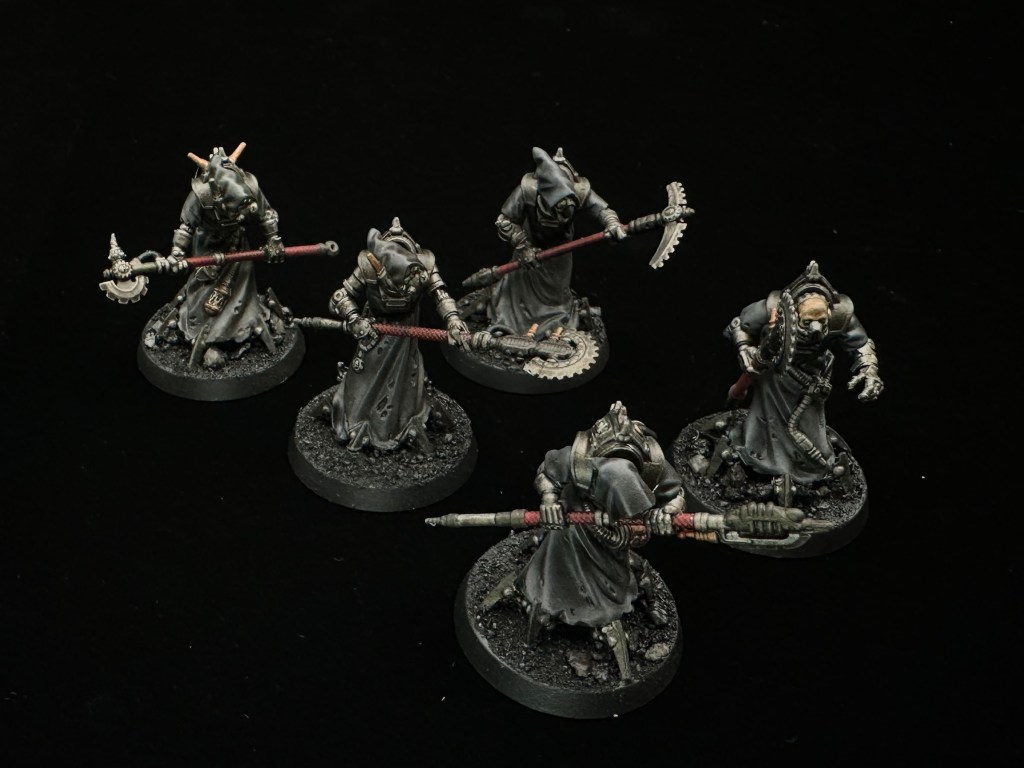 The dark red on the halberd pole grips adds a bit of colour and harks back to the Ad Mech origins.