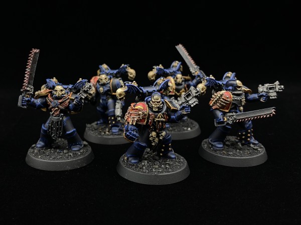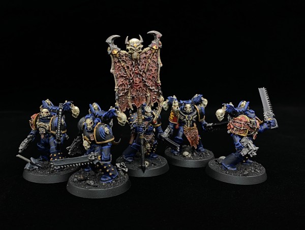 Started on a new Assault Squad for the 19th Company. A combination of new Chaos Space Marine models and old ones to make an initial squad of 5, the plan is a second set of 5 in the near future. Added some skulls on 1mm trace chain, that seemed to work well so we will... Continue Reading →