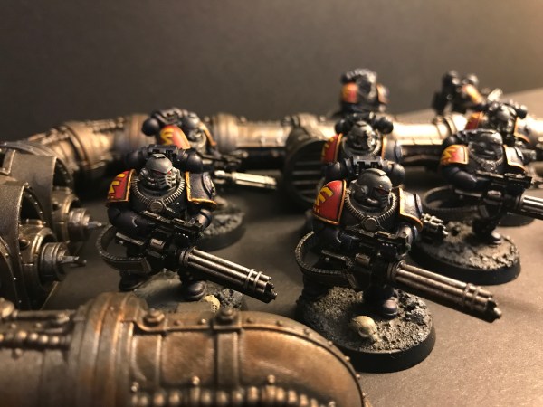 Traitor Marines with miniguns, just had to have them. Even if the weapon stats are a bit naff, enjoyed painting these up.