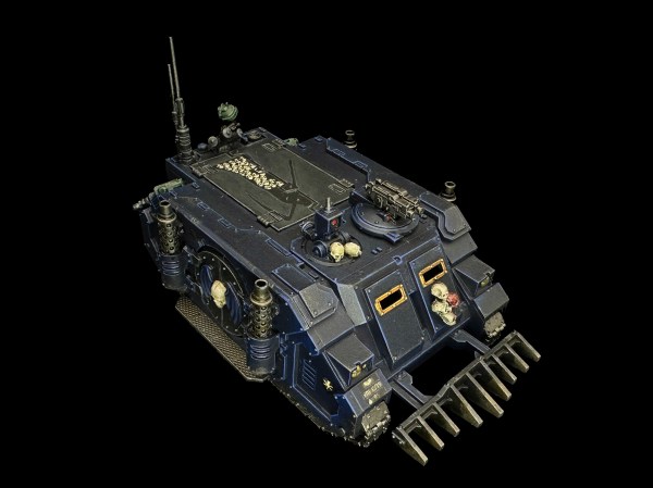 Added another Rhino to the company inventory. Bespoke Skull Reapers company graphics came out much better this time, but I have a plan to make some further improvements on the third attempt. Standard load out of skulls and trophies. This is recon spec. so has additional optics and field communication array. Additional fuel tanks too.... Continue Reading →