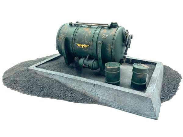 Another really nice bit of Forgeworld scenery, the classic fuel dump. From factory in Nottingham this model saw too much resin in the mould and hadn't had enough time on the belt sander after and so there was a good 4-5mm edge below the sculpt. I added a piece of plasticard underneath to increase the... Continue Reading →