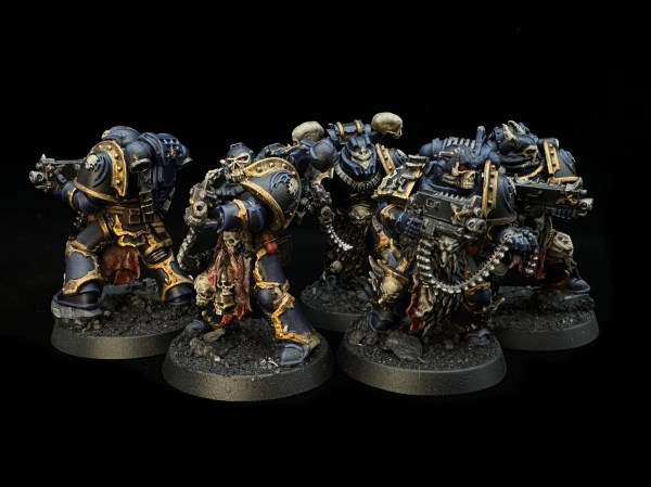 Painted up a squad of Nostramo-era veterans. These are some significantly converted Traitor Marine Chosen models with accessories and parts from a large number of different parts makers.